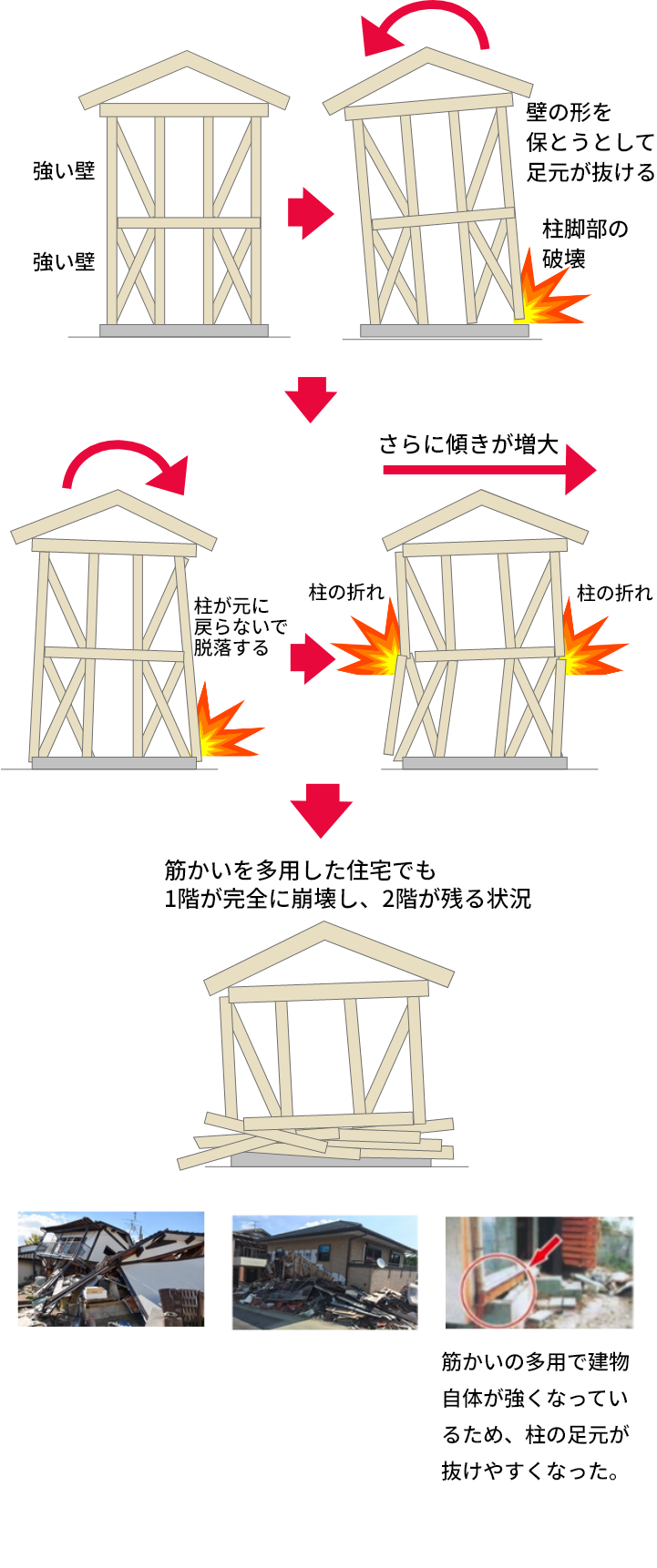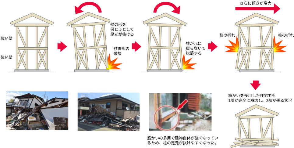2000年5月よりも前の建築基準である新耐震基準には、土台と柱が繋がる部分の基準がありませんでした。そのため阪神・淡路大震災の際には「ほぞ抜け」が発生し、多くの家屋が倒壊しました。