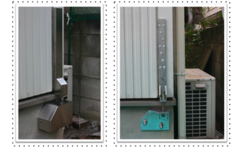 神崎建設の耐震補強工事では、このほぞ抜けを防ぐ外付ホールダウン金物をおすすめしています。外付けホールダウン金物は、建物の壁や床と基礎を強力に接続し、地震時の安定性と耐震性を向上させる金具です。